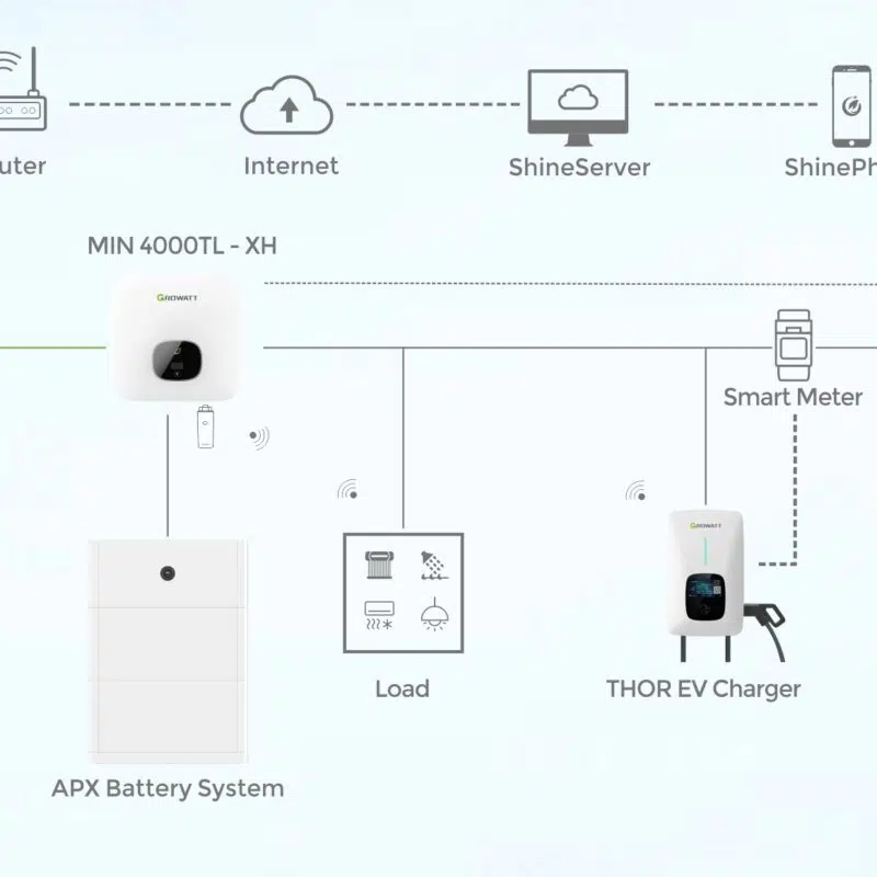 Med Growatt THOR 22AS-P EV Charger får du en intelligent ladeløsning, der automatisk udnytter strømmen fra dit solcelleanlæg optimalt.